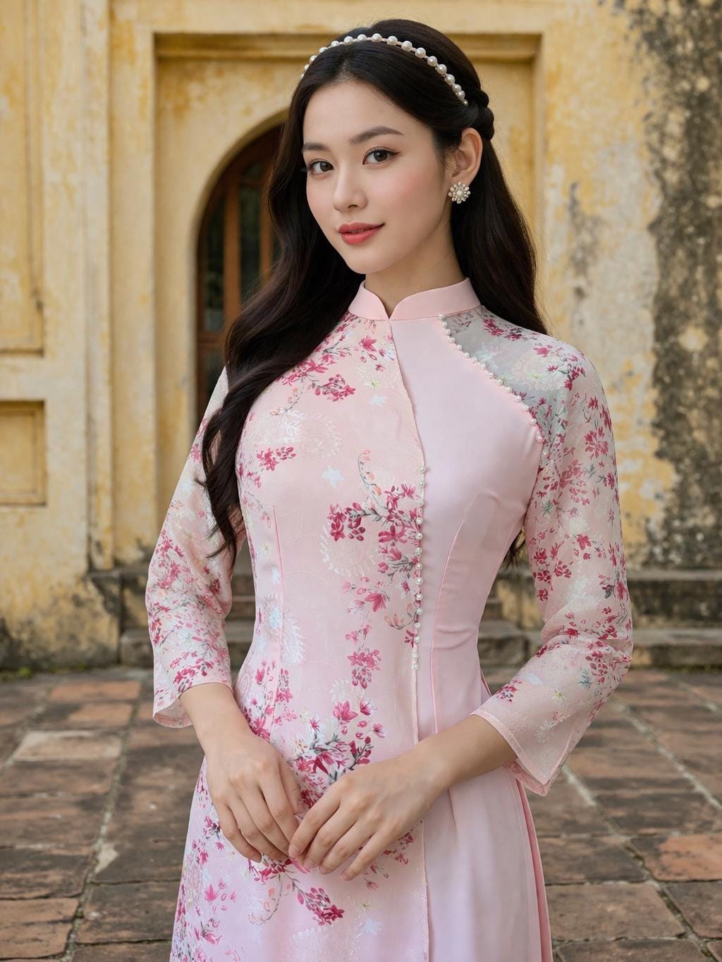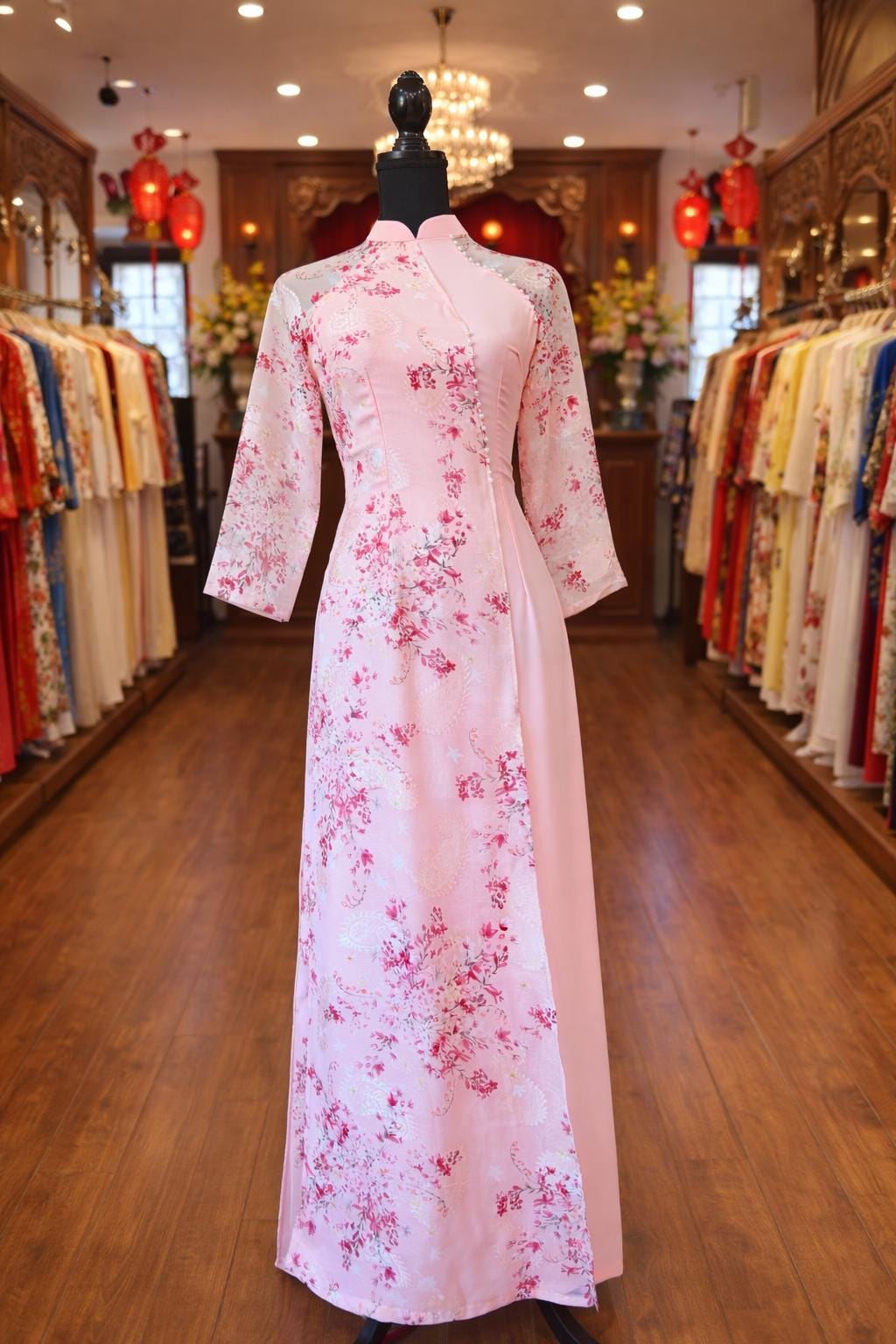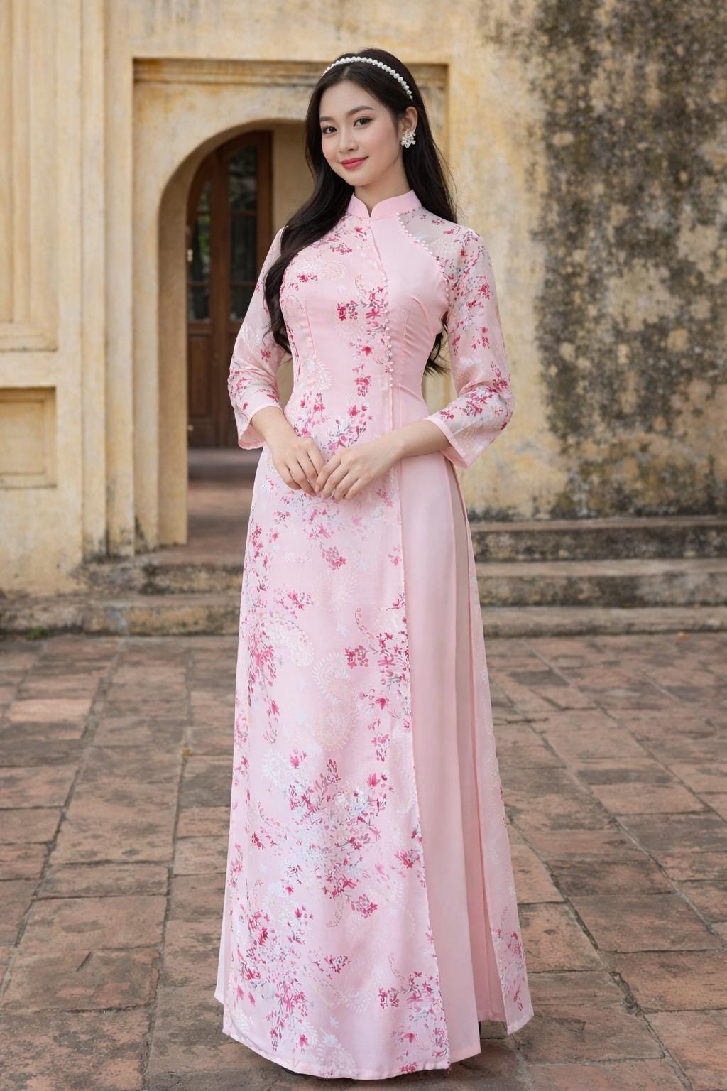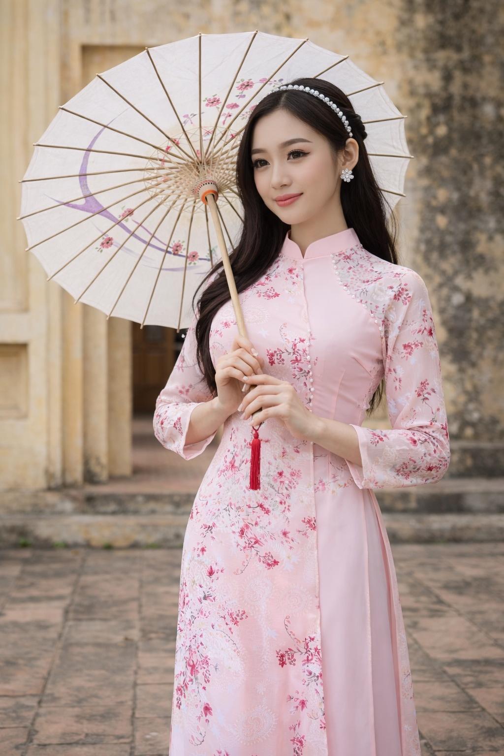 Beautiful Pink Ao Dai with Bead