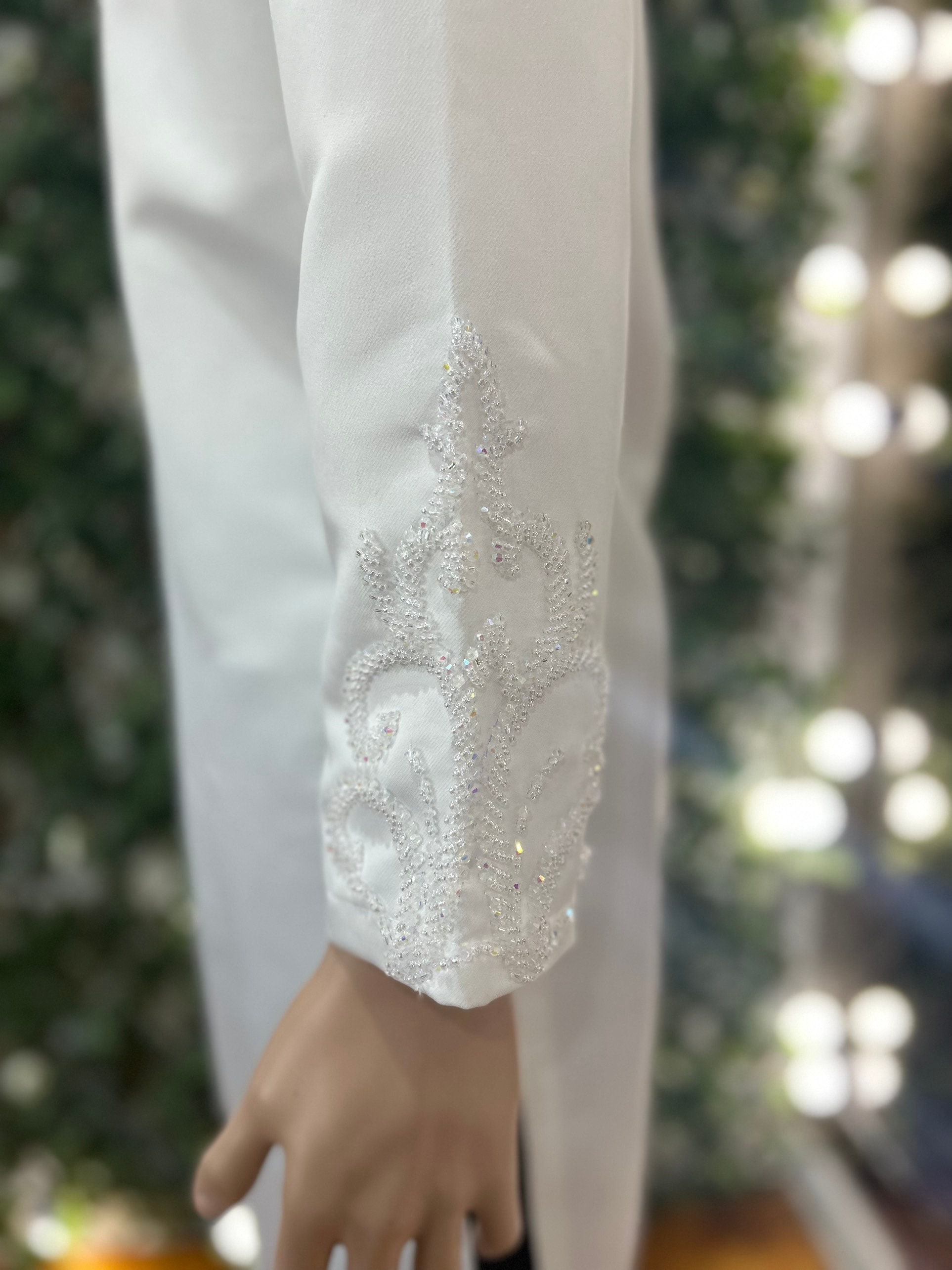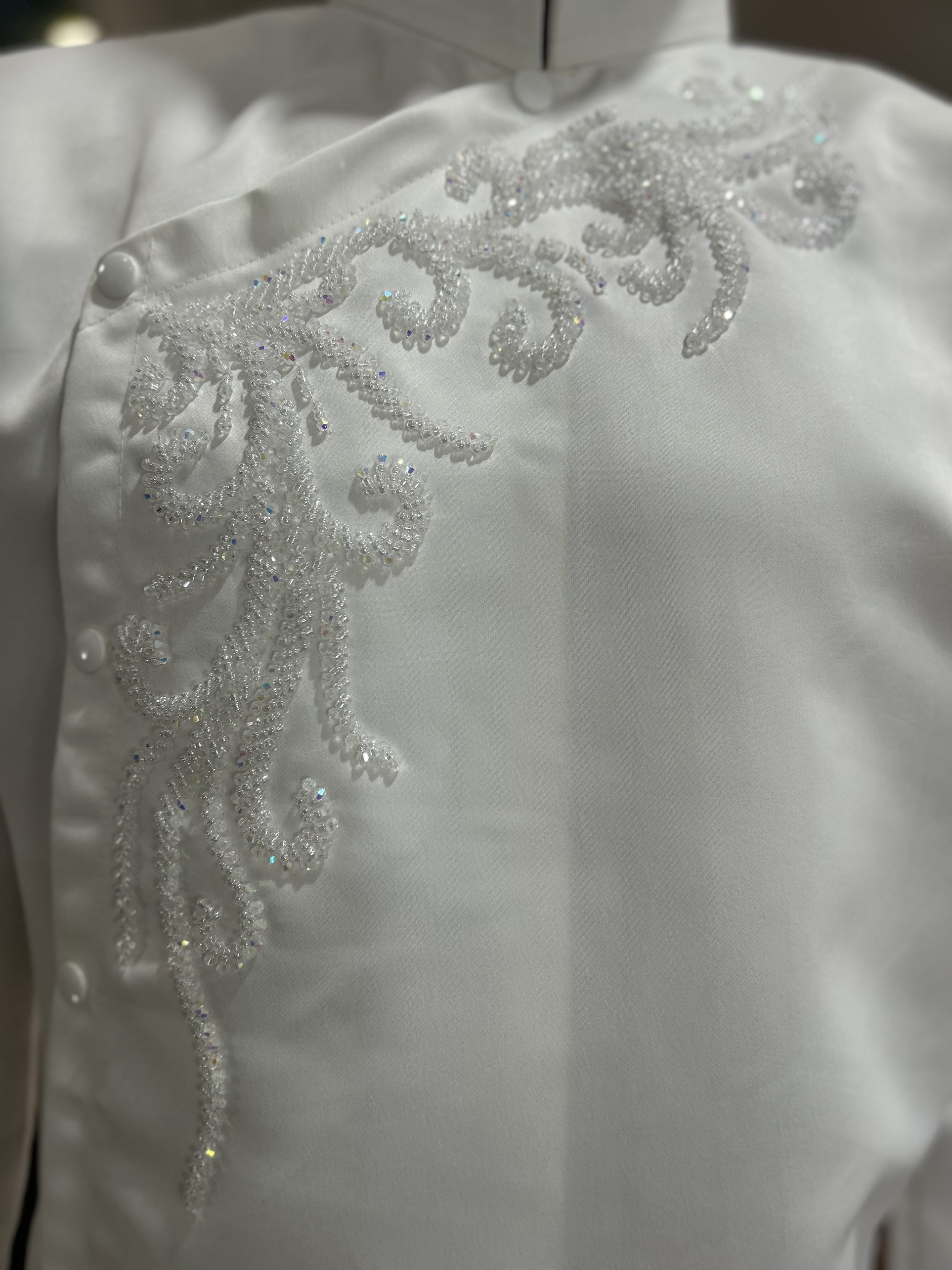 White Luxirious Designed Vietnamese Traditional Long Dress for Men, Ao Dai Chu Re, Ao Dai Nam. No pants