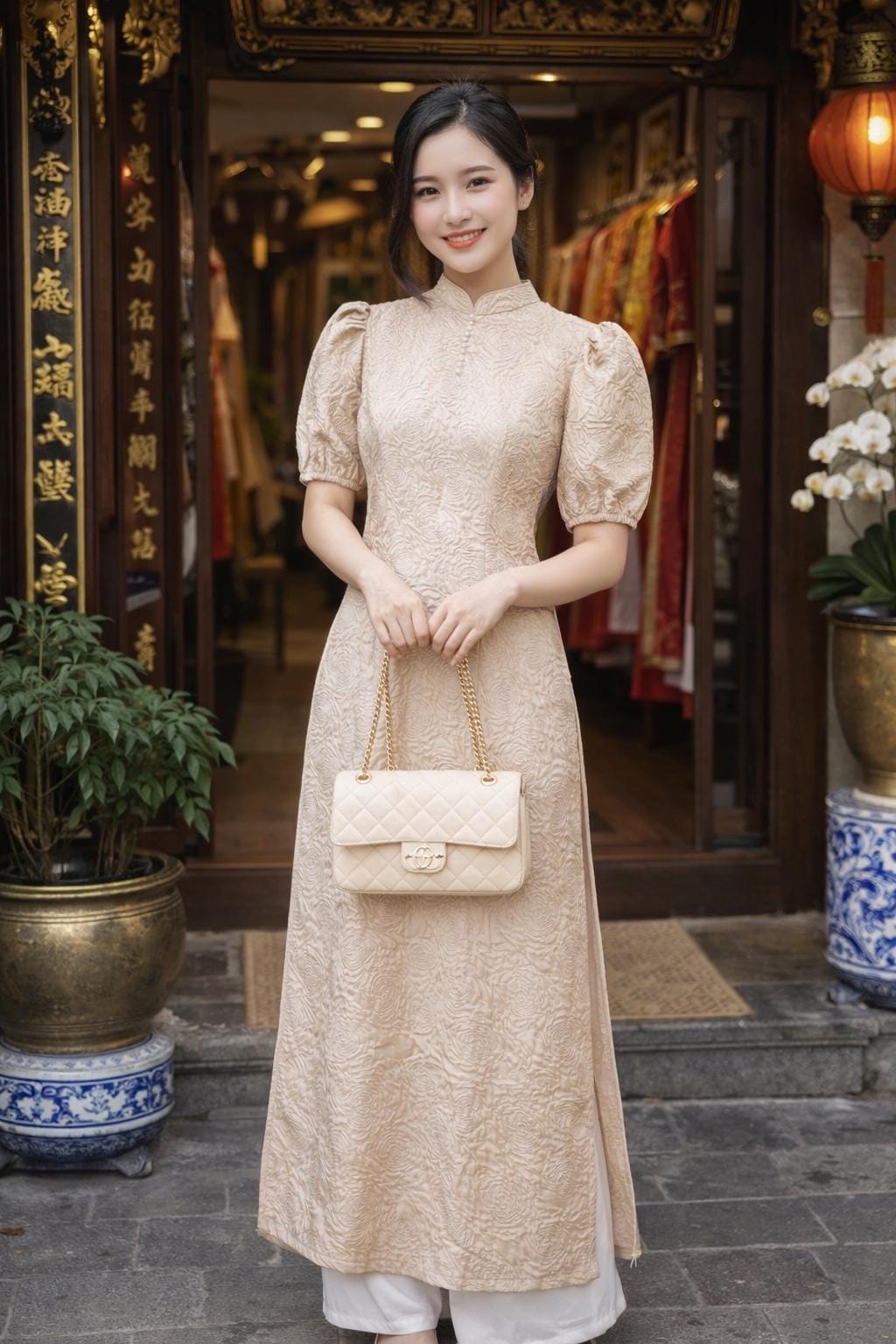 Please note: Almost all Ao Dai have some sewing Chalk Marks because these are Brand New, unwashed Ao Dai. Gently hand wash the areas will remove the marks.