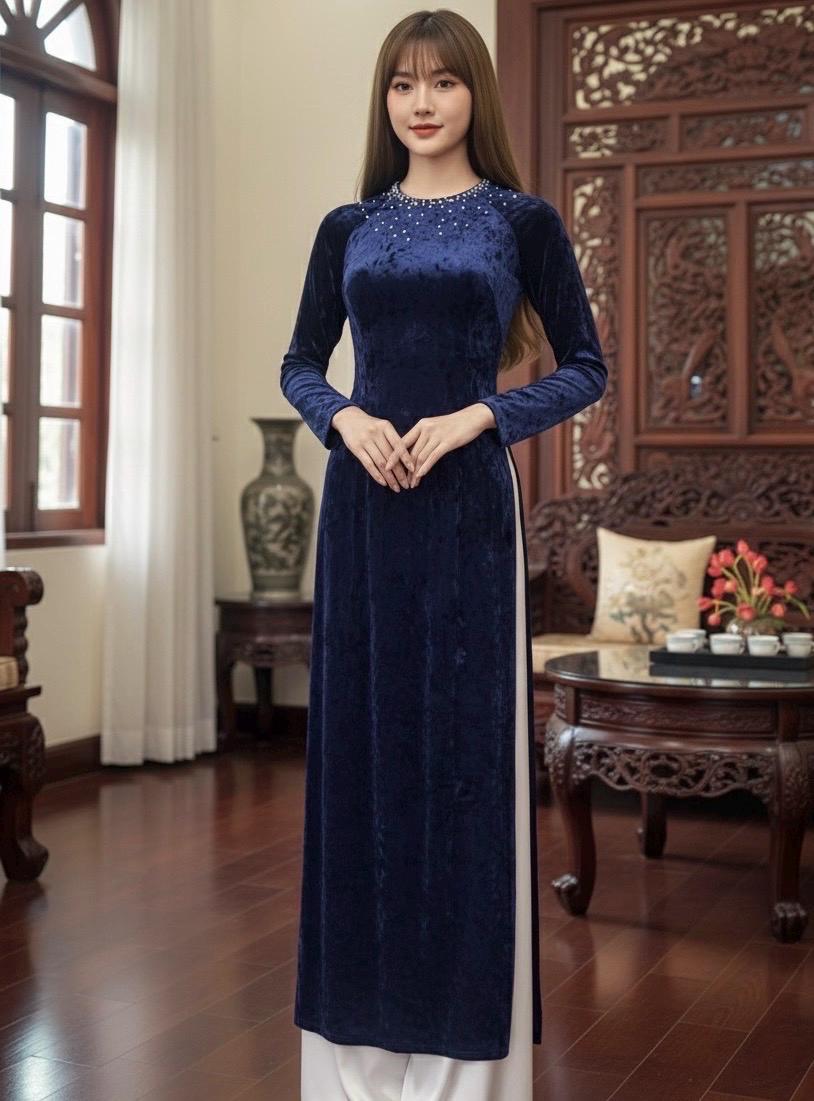 Navy Velvet TRADITIONAL Ao Dai Set Ao dai For Women, Ao Dai for mother of Bride, Áo Dài Nhung