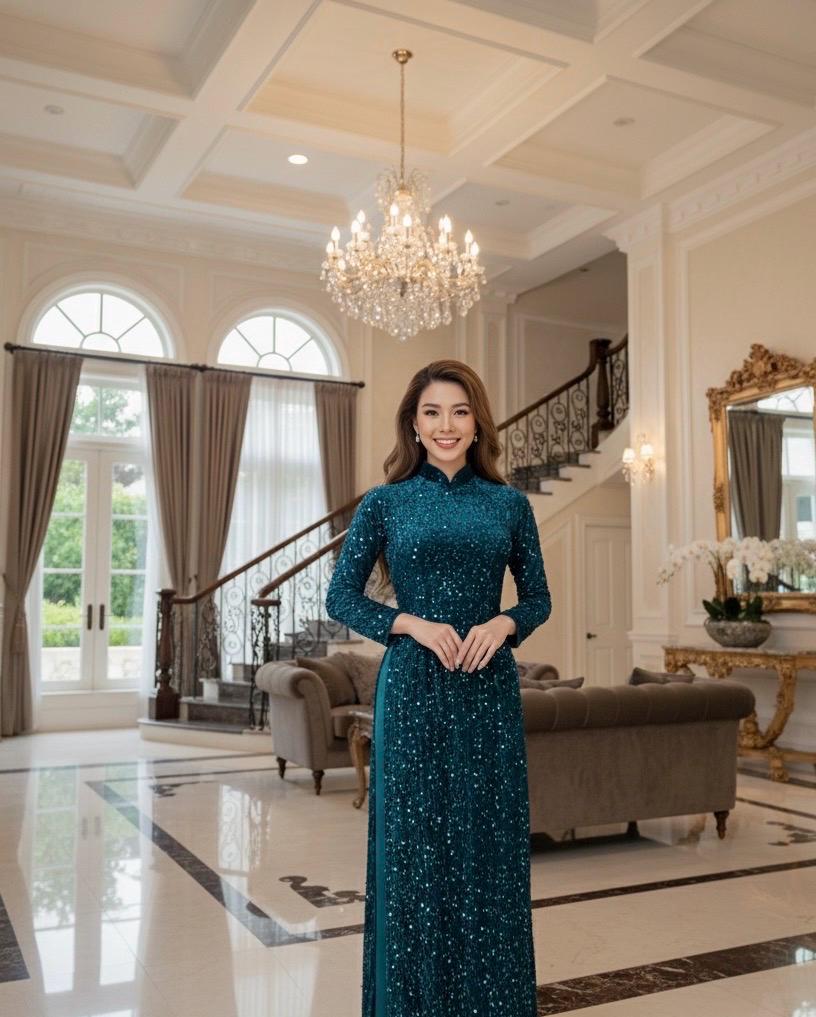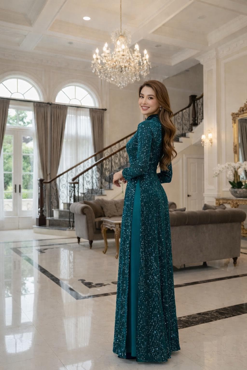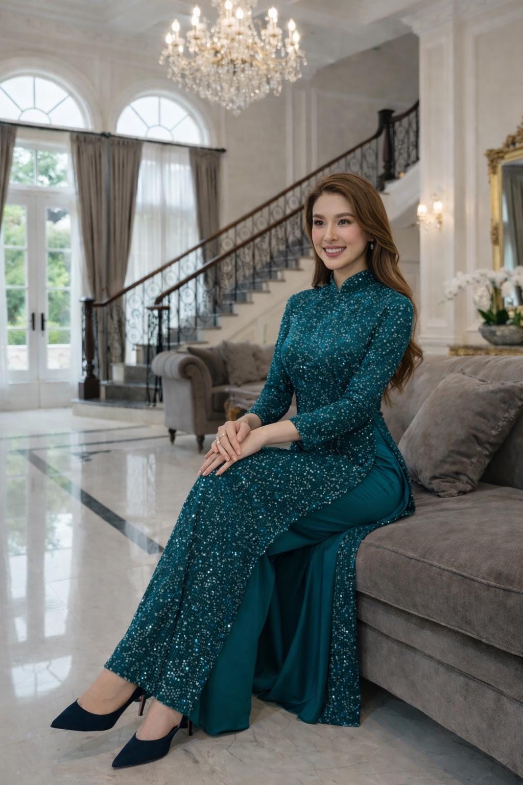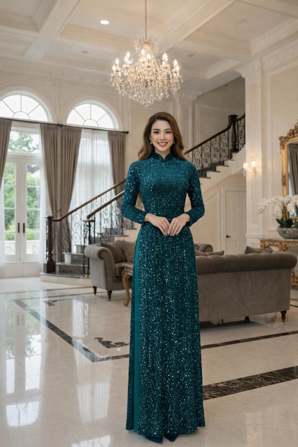 Tiffany Luxurious Sequin ao dai, Ao dai for Bride mother of Bride/Groom, Ao dai truyen thong Dep