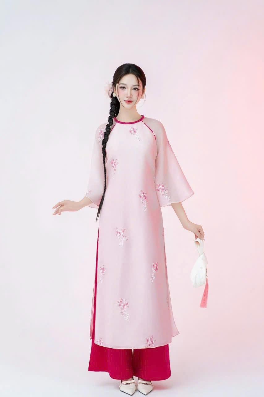 Modernized Embroidered Pink Ao Dai, Ao Dai Viet Nam Cach Tan Cao Cap, Áo Dài việt nam cao cấp
