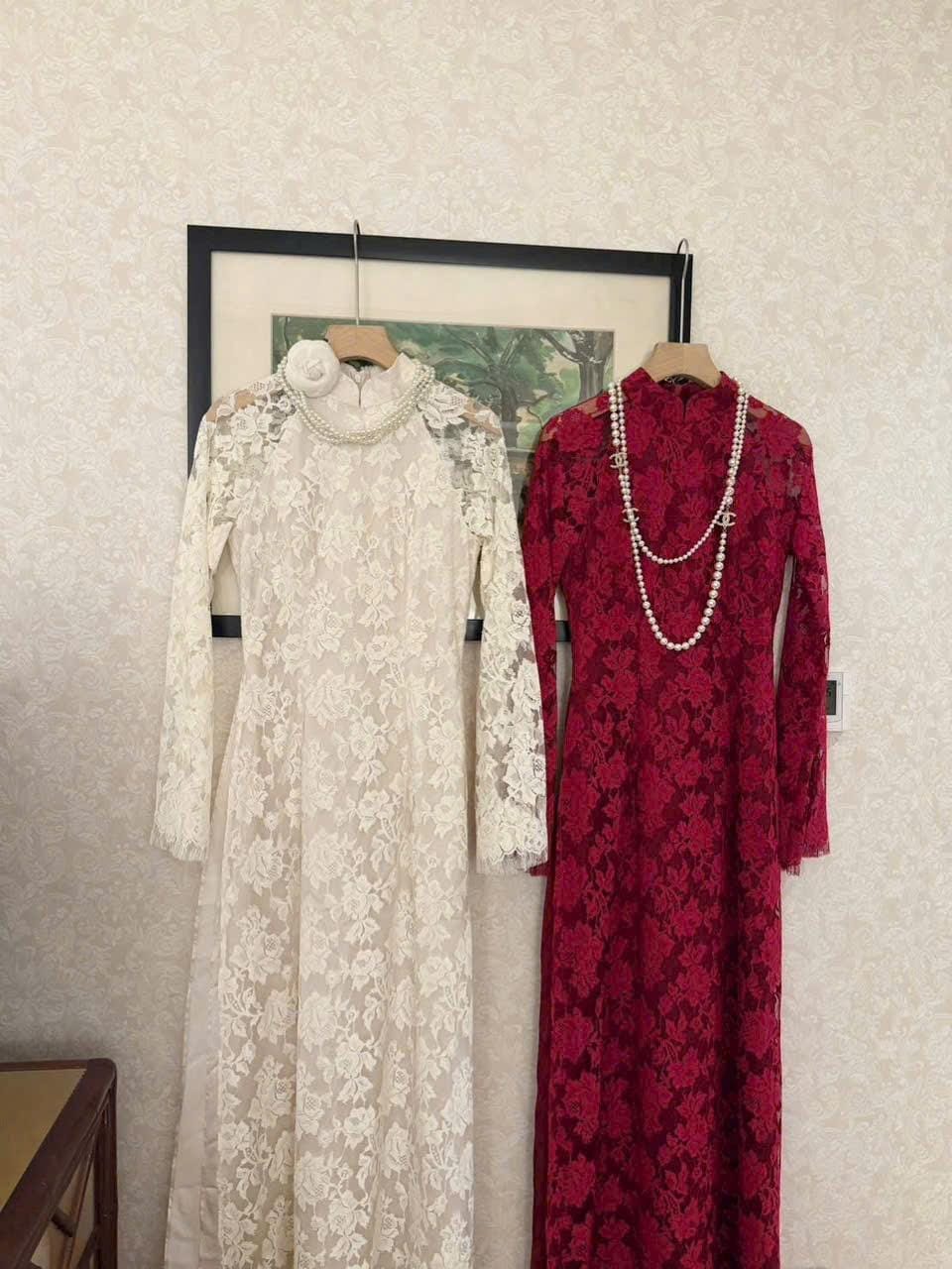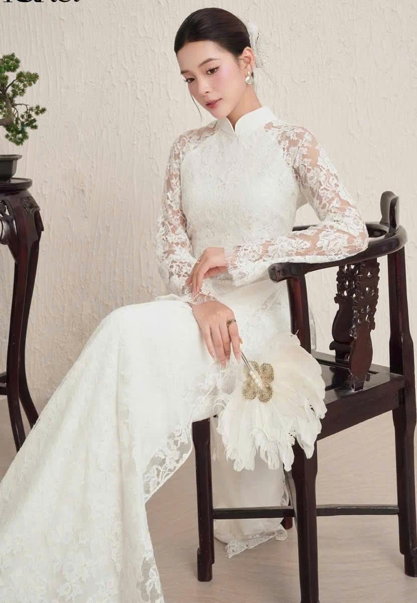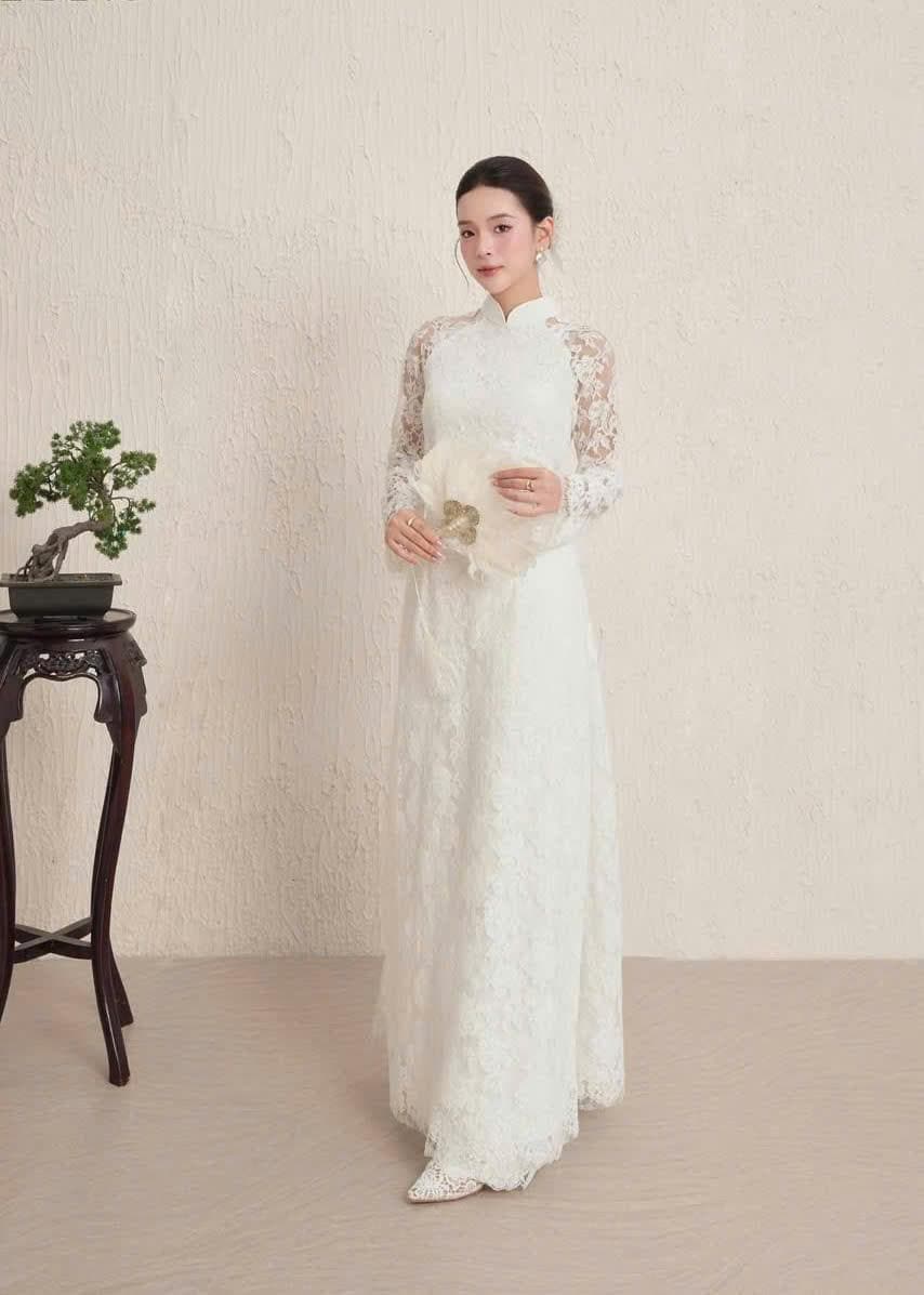 Luxurious White Ao Dai for The Bride, Ao Dai Co Dau Mau Do, Áo dài Trắng Cô Dâu