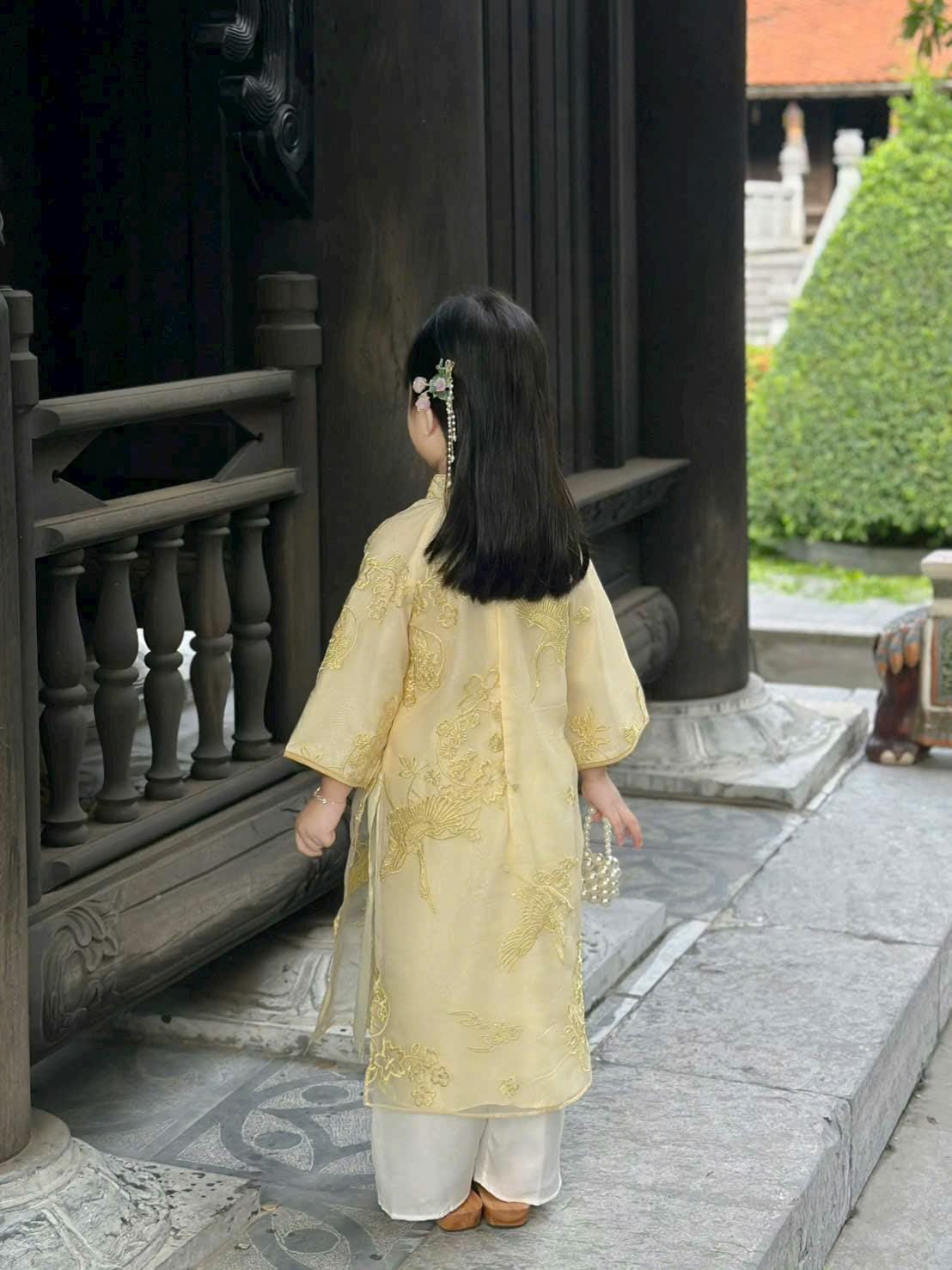 Yellow Emroidered 4 flaps Vietnamese Ao Dai For Girls, Children's Ao Dai, Ao dai for Kids , Kid's Ao Dai, Girls' Ao Dai