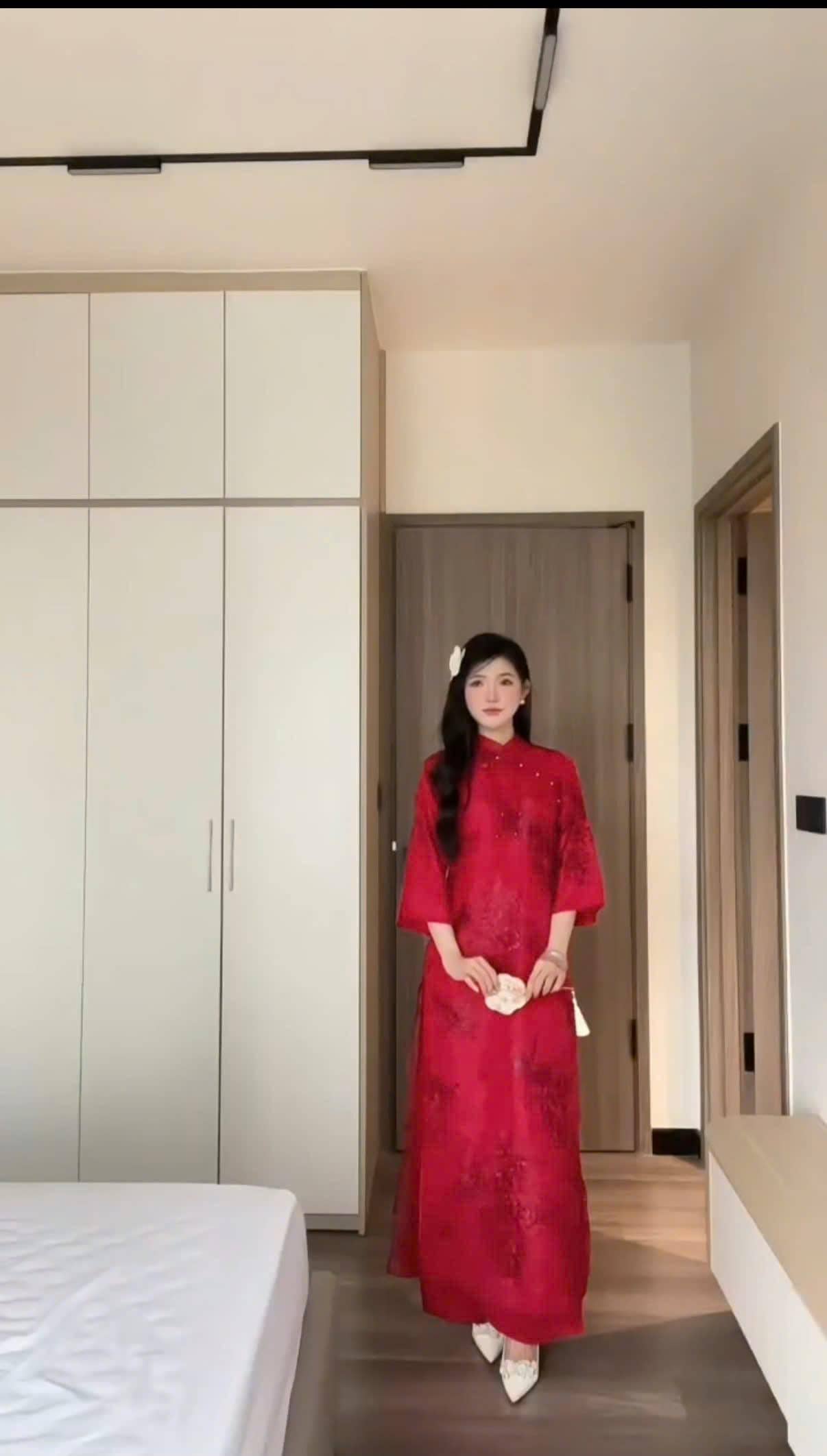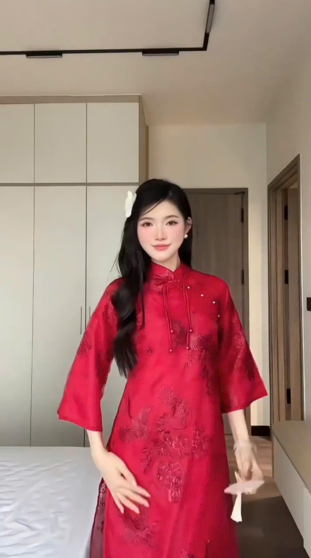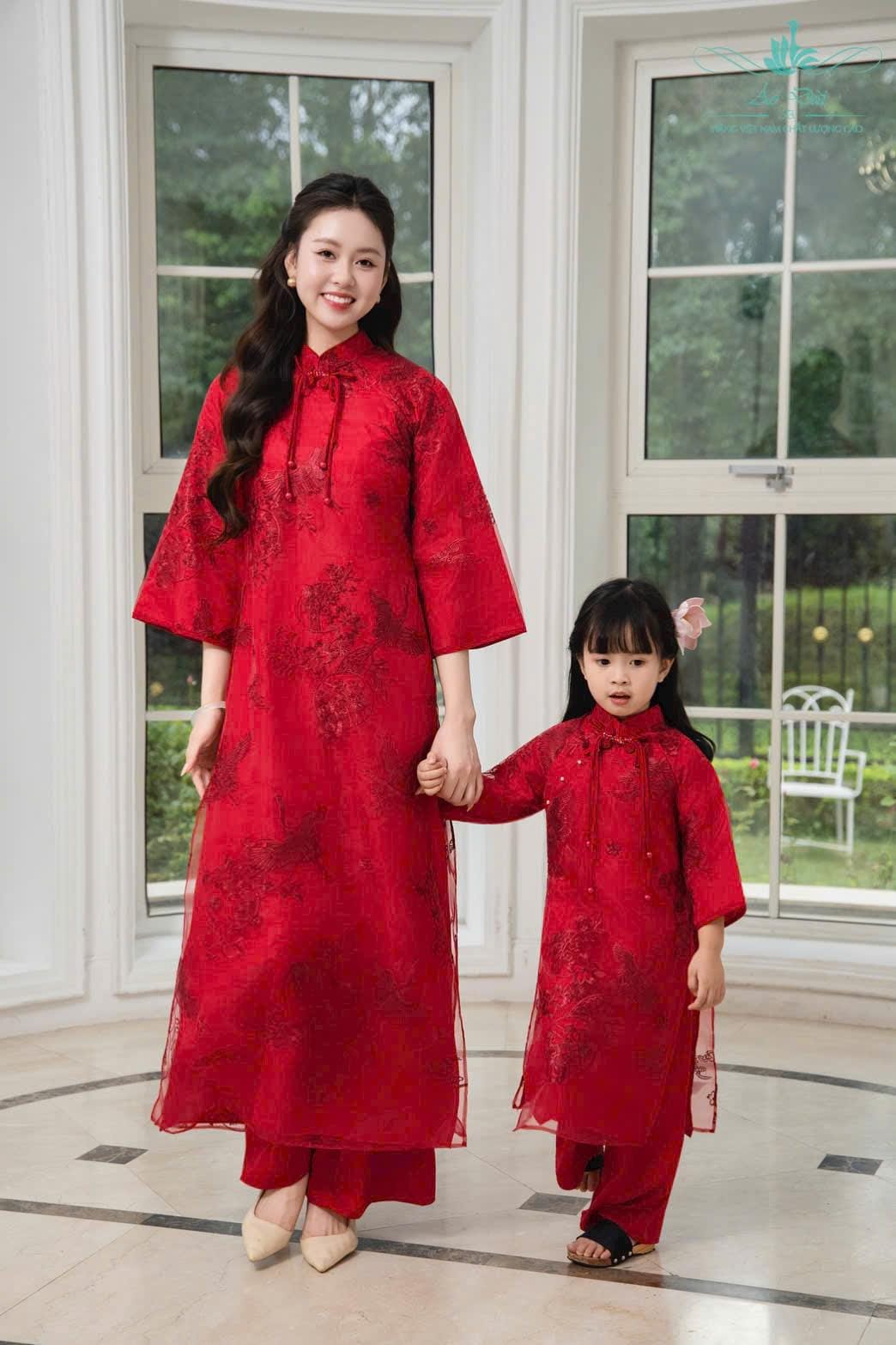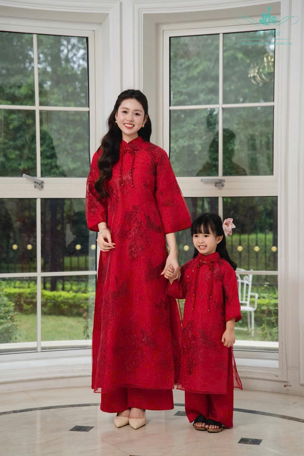 Red Modernized Embroidered Ao Dai, Ao Dai Viet Nam Cach Tan Cao Cap, Áo Dài việt nam cao cấp