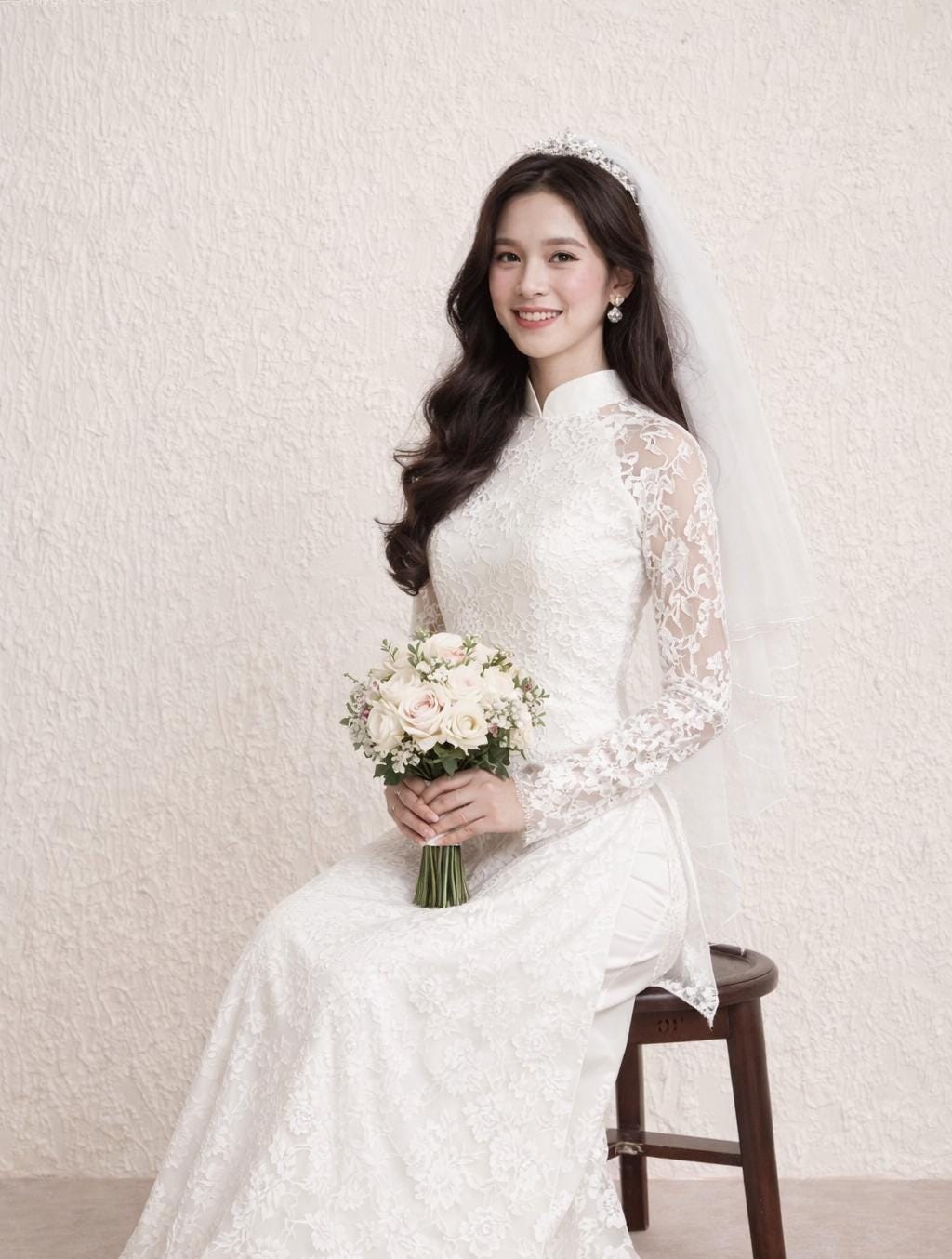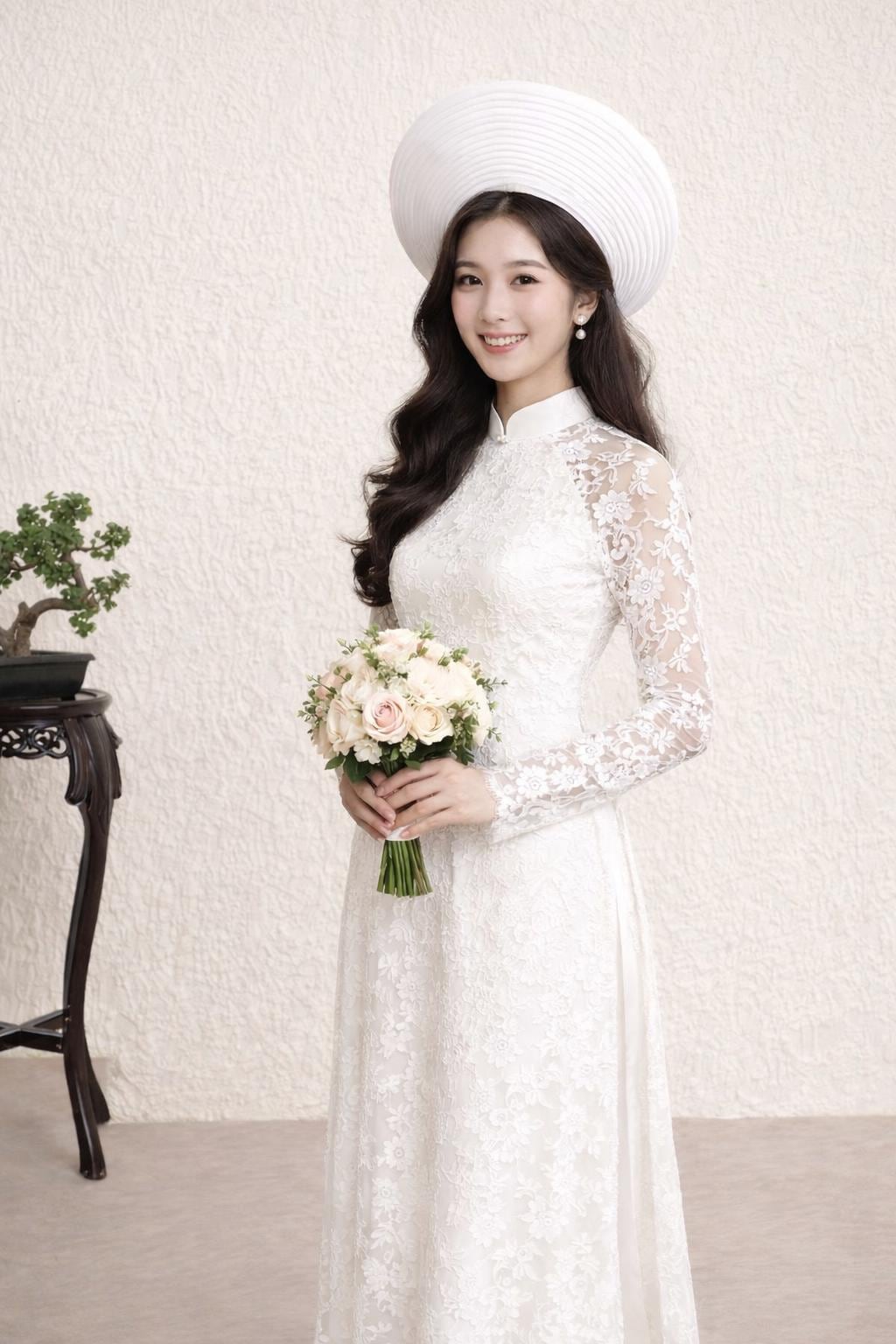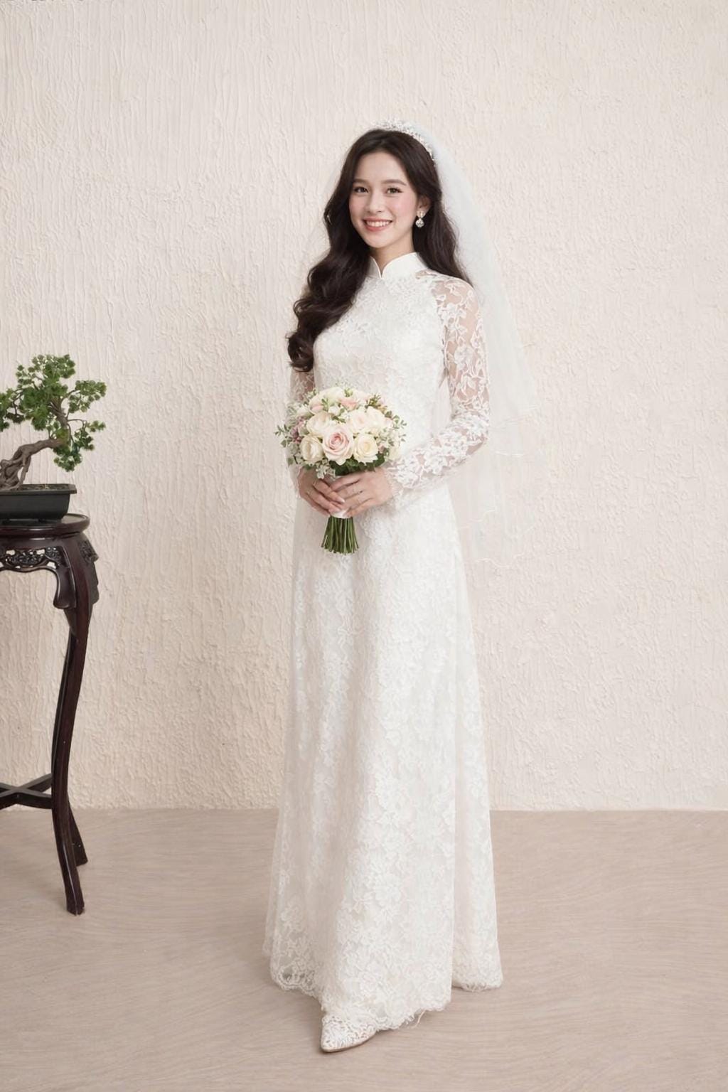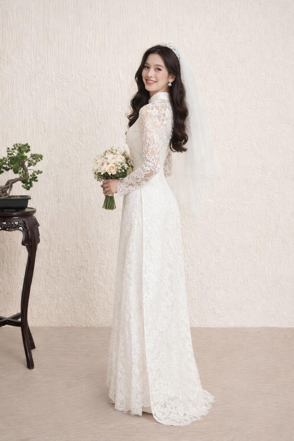 Luxurious White Lace Ao Dai for The Bride, Ao Dai Co Dau Mau Do, Áo dài Trắng Cô Dâu