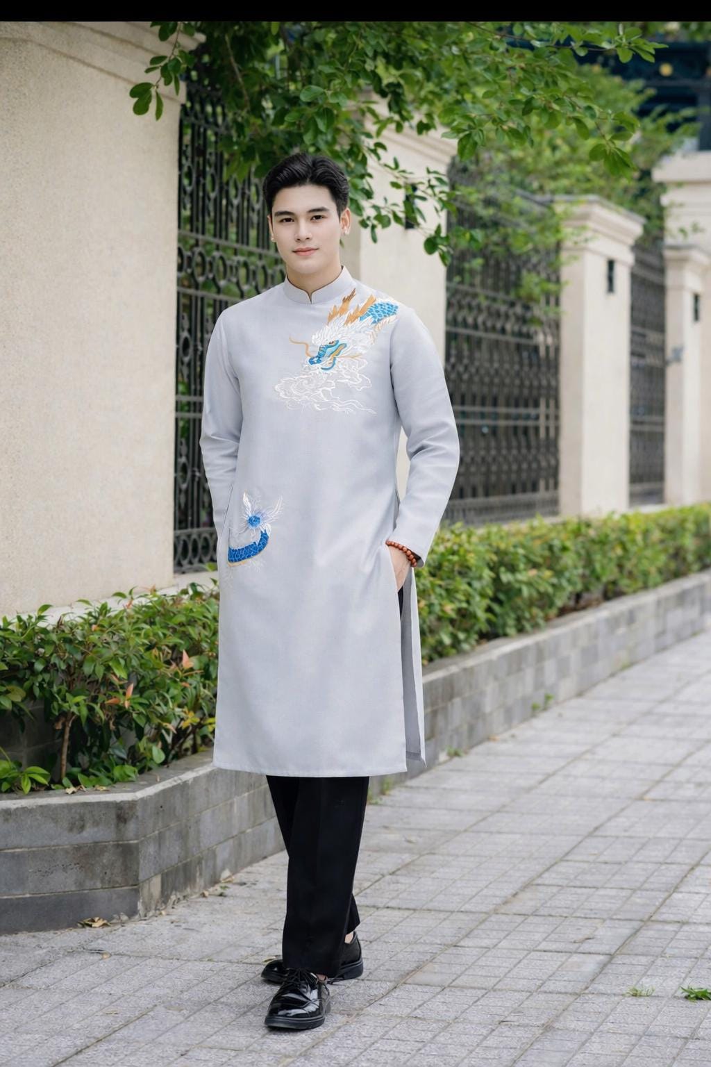 💚 High quality hand-crafted Vietnamese Traditional Long Dress for Men, Ao Dai for Groom