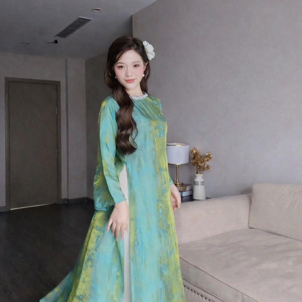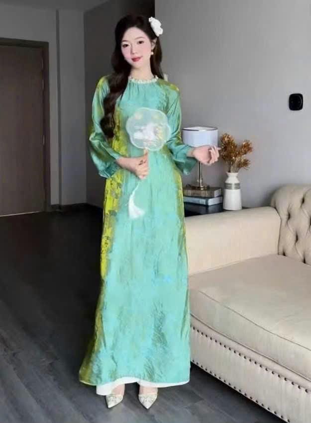 Designed in a loose-fitting, straight silhouette, this Áo Dài provides a relaxed yet refined look, flattering many body types and offering all-day comfort while maintaining a graceful, modest style.