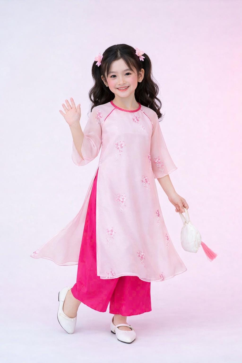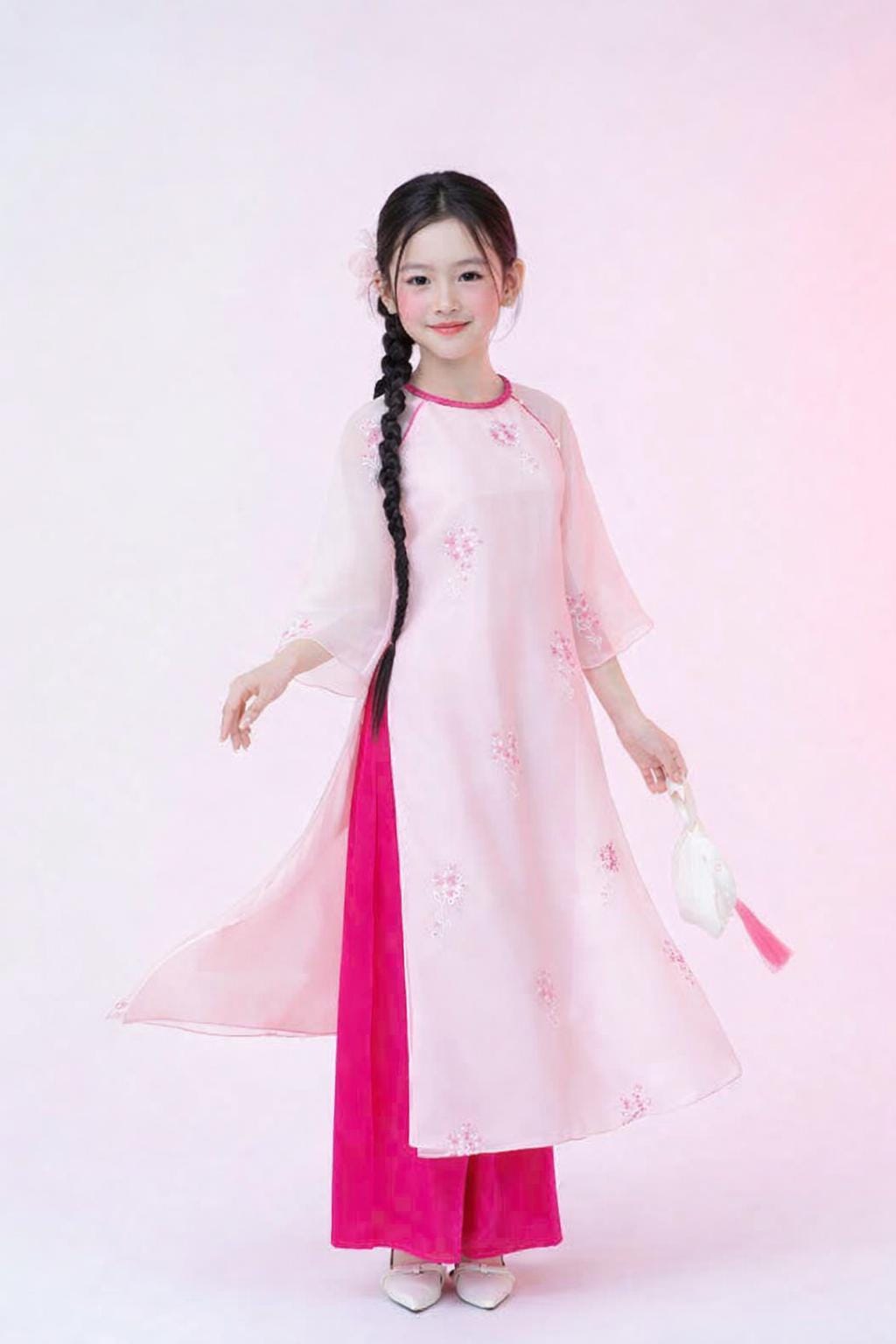 Pink Emroidered 4 flaps Vietnamese Ao Dai For Girls, Children's Ao Dai, Ao dai for Kids , Kid's Ao Dai, Girls' Ao Dai